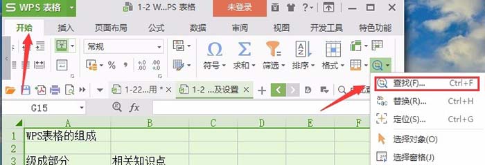 1、使用查找替换命令。可以按快捷键Ctrl+F,调出查找替换对话框,也可以点击开始选项卡,然后选择:分组及命令,如图所示。