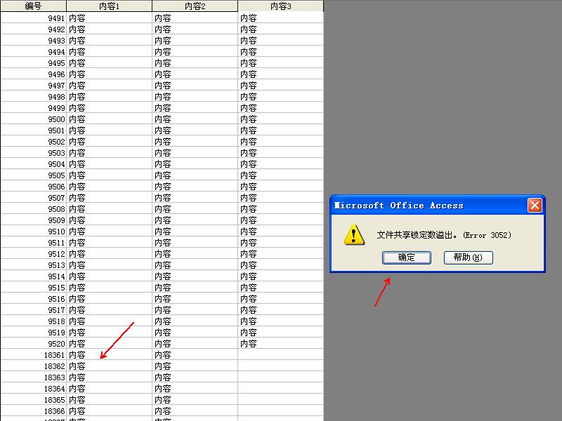 Access同时复制或粘贴9500条数据以上,就会出现文件共享锁定数溢出(Error 3052)的问题