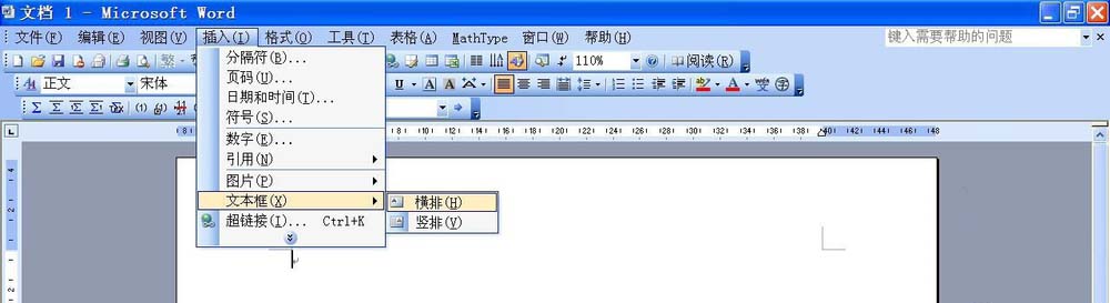 1、打开word2003,新建一个空白文档,点击“插入→图片→文本框”