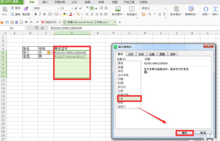 6、如果小伙伴们还要继续添加身份证号码的话,先提前参照沫沫前面的操作步骤,将单元格转换为文本后再添加,就不会再出现这些单引号啦!