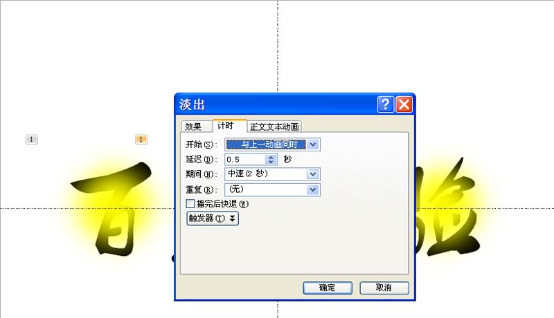 利用ppt制作灯光动画文字效果,主要利用了淡出动画效果,现在就把操作步骤和截图分享出来,供大家参考使用,希望对你有所帮助和启发。