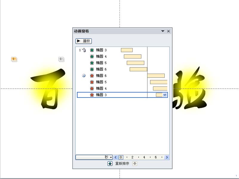 7、依次对第三四个椭圆进行同样设置,设置延迟时间依次为1s、1.5s,设置完成后接着按f5进行测试查看效果。