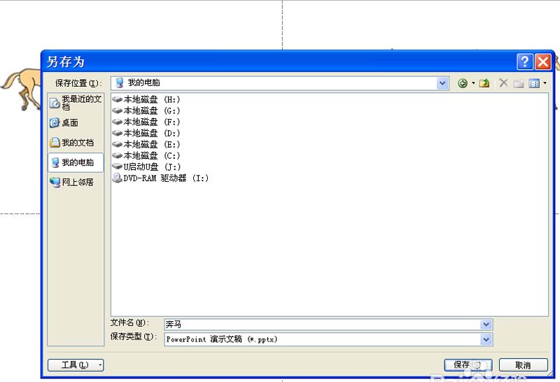 9、执行文件-另存为命令,在弹出的对话框中输入名称“奔马”,选择一个合适的位置进行保存即可完成操作。