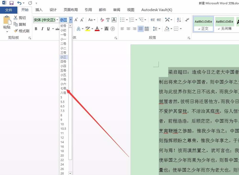 2、然后选中全部文本,将其字体设置成为7号。
