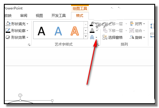 3、保持正圆在选中的状态;然后,在”格式“选项卡这里的“艺术字样式”组这里点下“文字效果”的小三角。