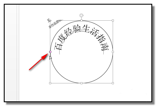 7、如果觉得这个弧形不太满意,可以用鼠标点住圆左侧的淡紫色节点,进行调节。
