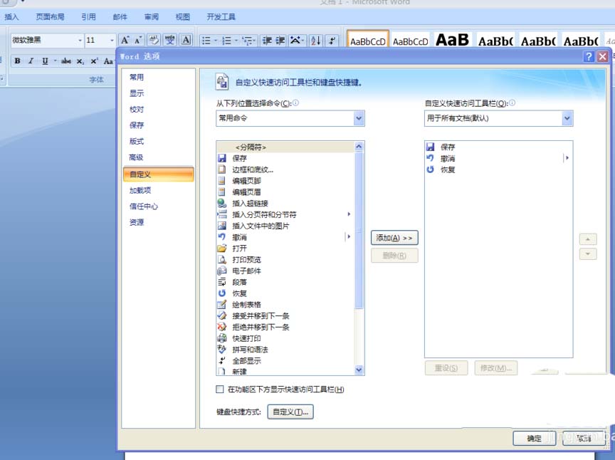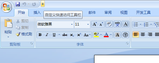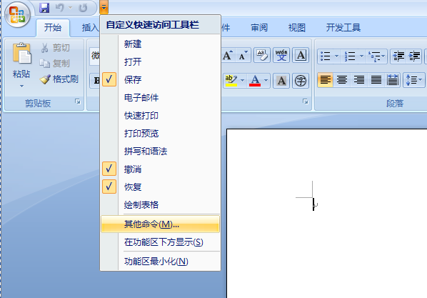 2、在功能区选择快速工具栏的小三角,如图