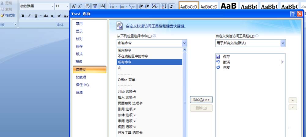 5、将常用命令,改为所有命令,如图