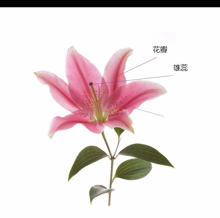 1、插入线条和文本框如图所示,这里我想点击花瓣时,显示“花瓣”文字。点击雄蕊时,显示“雄蕊”文字。点击雌蕊时,显示“雌蕊”文字。