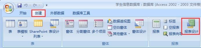 1、在数据库中单击“创建”选项卡下“报表”组中的“报表设计”按钮,打开报表的设计视图。