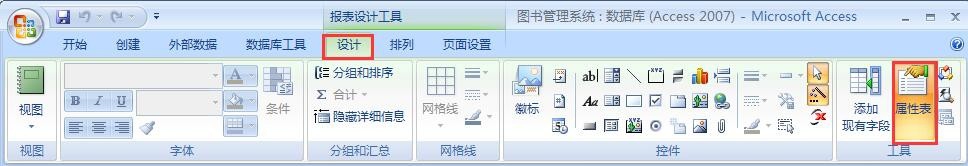 2、单击“设计”选项卡“工具”组中的“属性表”按钮,打开“属性表”窗格。