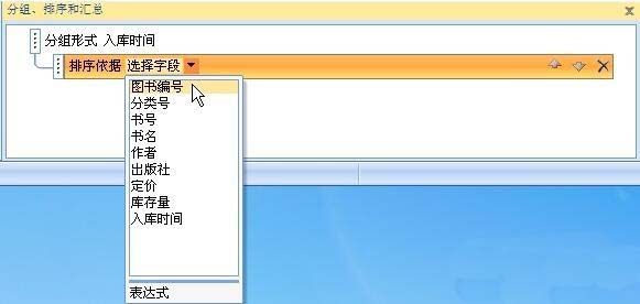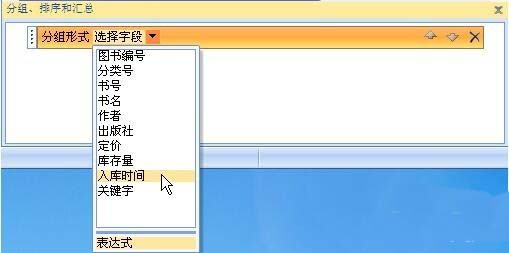 5、在打开的分组依据窗格中,单击“选择字段”右侧的三角按钮,在弹出的列表中选择分组所用字段,默认排序次序为升序。