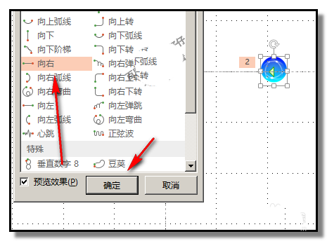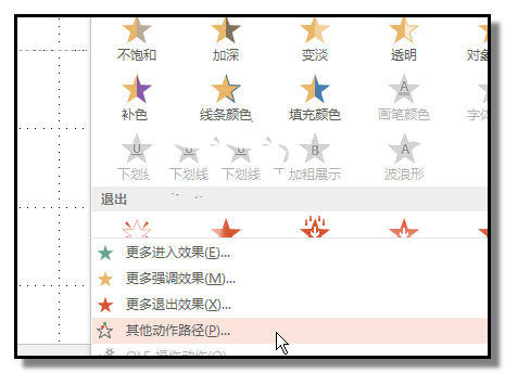 3、在弹出的面板中点“其他动作路径”;弹出“添加动作路径”对话框,在对话框中,点“向右”路径;再点确定。