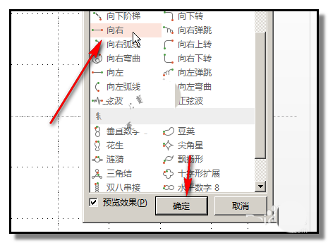 8、按向左的箭头键,把“向右”路径移动到“向左”的路径这里左右对齐并重合在一起。