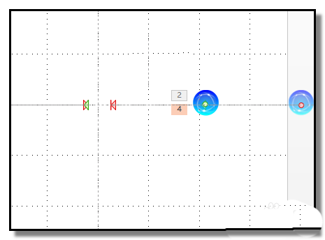 1、插入两个小球图片,把图片调整到合适的大小和位置。两个小球要保持在同一水平线,为了更好确定小球位置,点开“视图”选项卡,把“网格线”和“参考线”都打上勾。这样,我们就能清楚的看到两个小球所处的位置了。