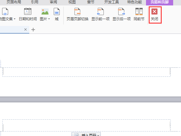 9、最后,页眉处理完成后,点击上方的“关闭”完成操作。