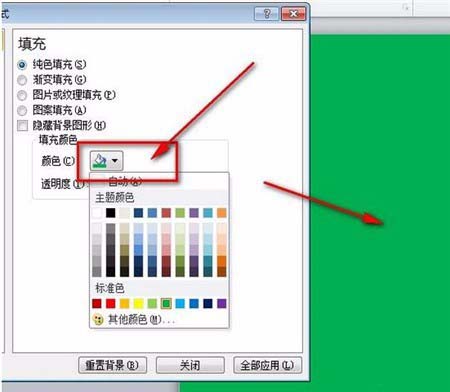 4、首先是纯色填充,我们选择自己喜欢的颜色点击即可。我选的是绿色如下图所示。