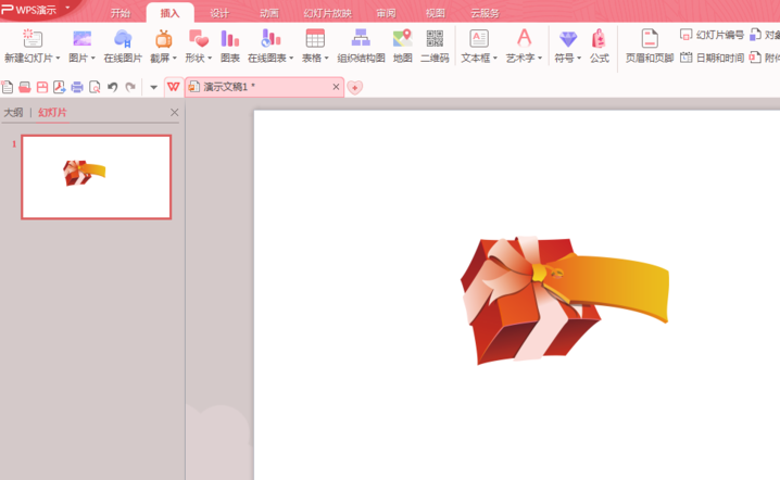 2、在新建wps文档中,点击上方工具栏中的“插入”,在“插入”的下面就会出现一排可供插入的工具,选择并点击“在线图片”。