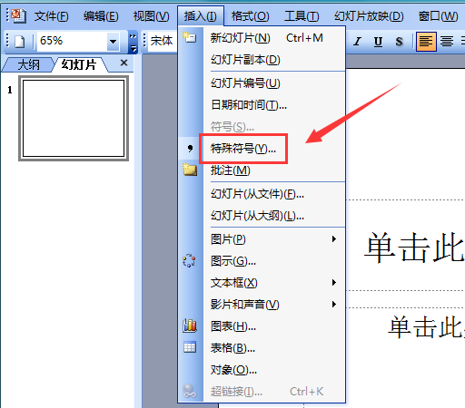 PowerPoint 2003是一款多媒体演示文稿制作软件,我们在使用该软件制作文本时,常常需要输入一些特殊的符号和形状,此时使用键盘输入就不太方便了,下面我们就来看看使用该软件如何输入除以符号的吧。