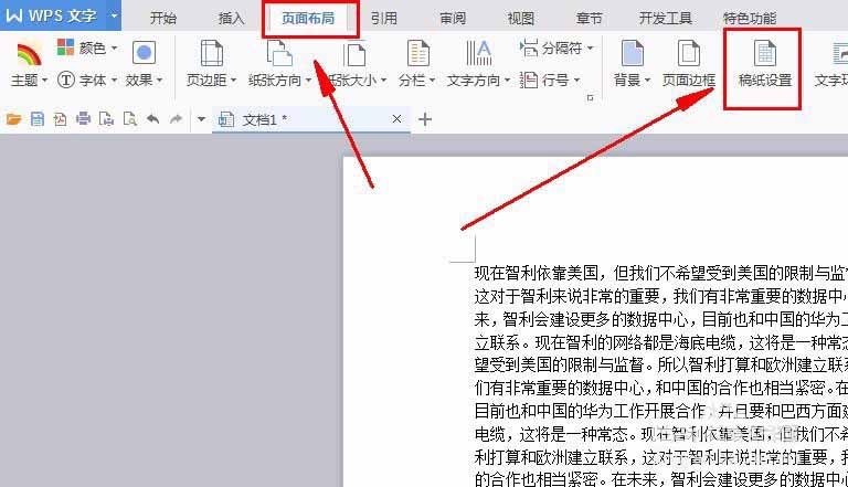 2、选择页面设置——单击打开稿纸设置