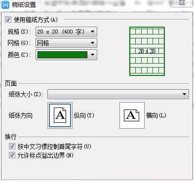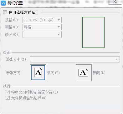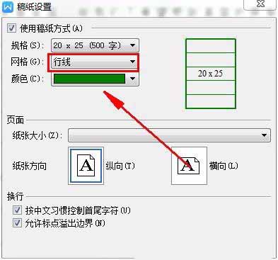 3、弹出稿纸设置对话框,在使用稿纸方式打钩。