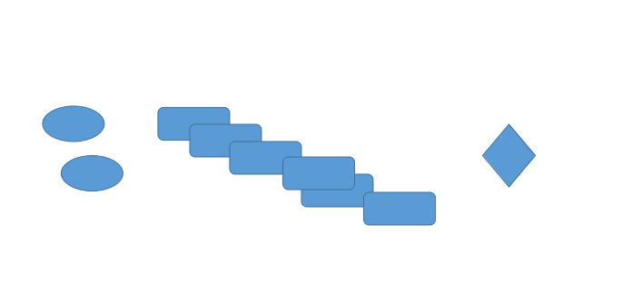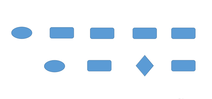 3、在空白文稿上依次画椭圆、圆角矩形和菱形,根据需要复制图形数量。假设我们用到2个椭圆、6个矩形、1个菱形。