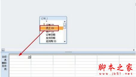 4、将员工ID拖拽到下面的设计表格中