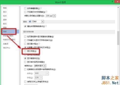 接着我们点击高级,下拉菜单,在显示书签前面的方框上打上勾即可