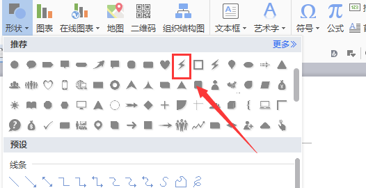 WPS文字是一款办公软件,在软件在文字编辑于输入方面是非常强大的,我们在使用该软件制作文本时,常常需要输入一些特殊的符号和形状,此时使用键盘输入就不太方便了,下面我们就来使用该软件看看如何输入闪电形状的吧。