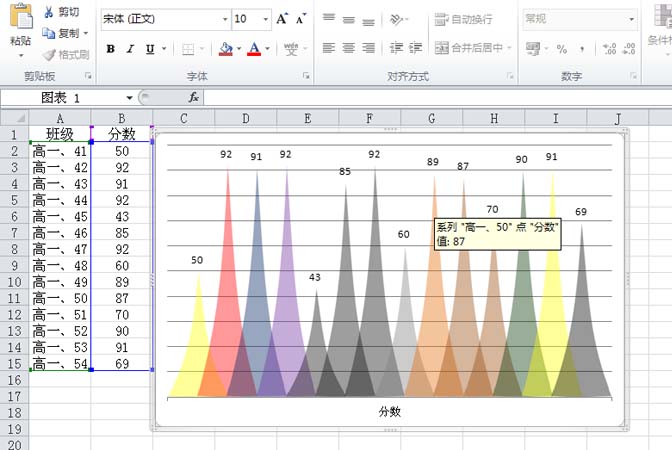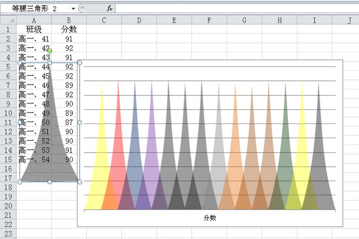 11、采用同样的方法依次设置不同的颜色然后复制粘帖,将所有的柱形换掉即可完成操作。