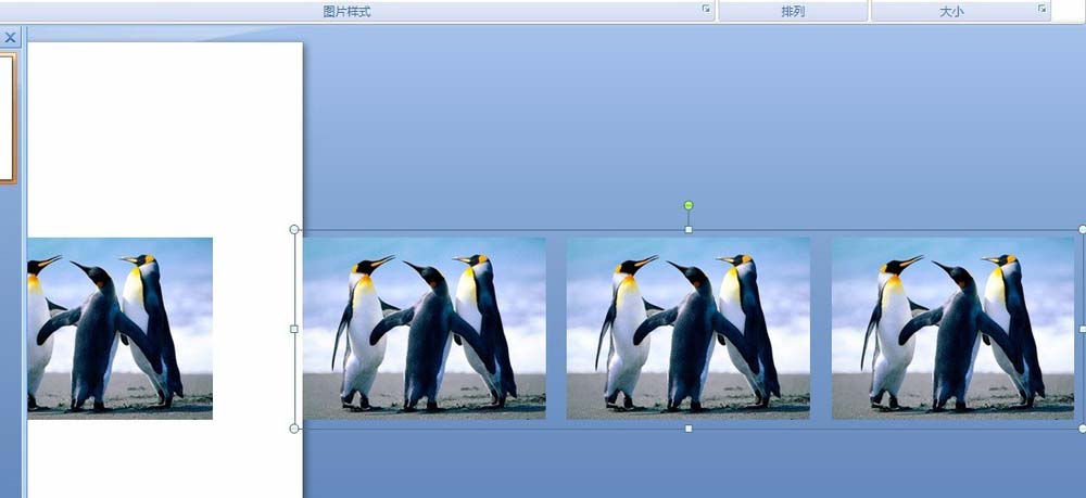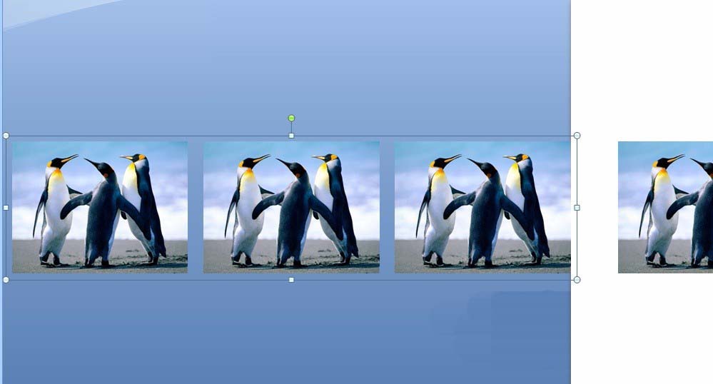 8、选中左边界外的图,按Del键删除。选中幻灯片内的图,按Del键删除。也就是说只留下最右边的复制图