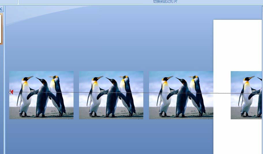5、按CTRL+SHIFT键将组合后的图片向左平移,复制粘贴至幻灯片的左界边缘