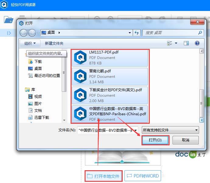 2、这里为了测试,就I一次性打开多个pdf文件,按ctrl同时用鼠标点击要打开的文件,选择完毕点击“打开”。