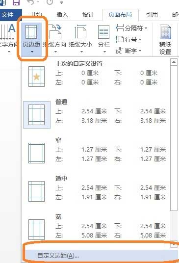 在“页面设置”——“页边距”选择“自定义页边距”