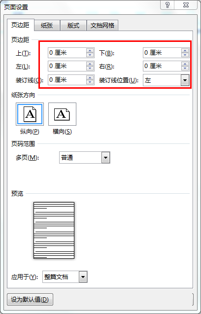 2、如图,把页边距的参数都设置为0
