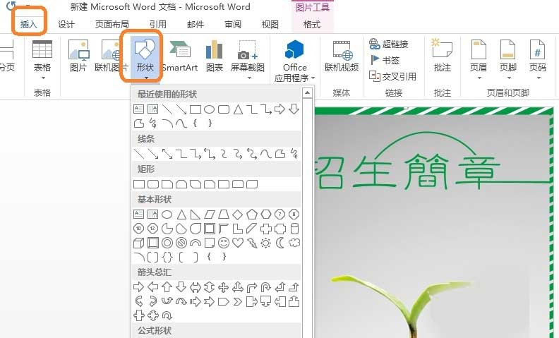 5、使用“插入”——“形状”命令插入图形文件
