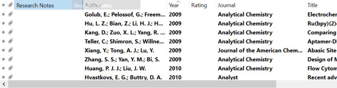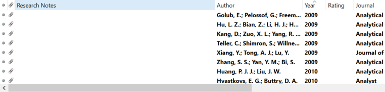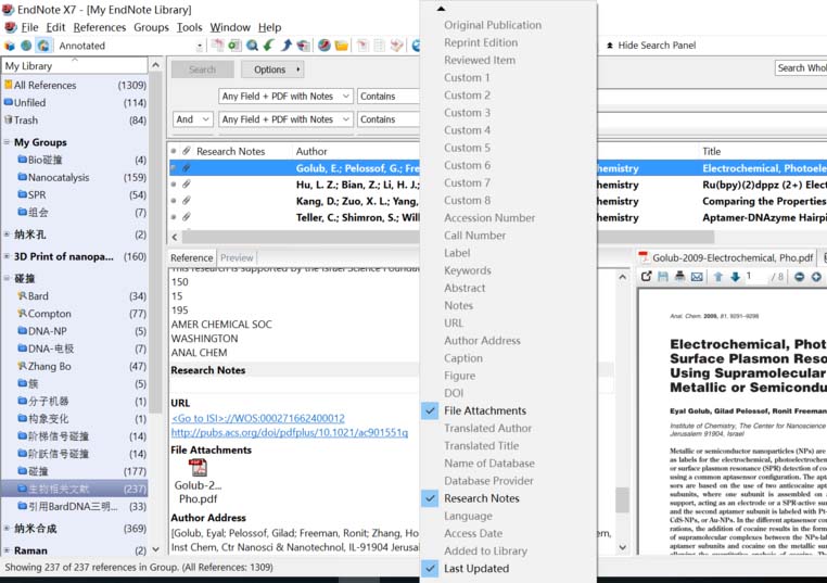 3、在文献详细信息界面中, 鼠标移动到第一行右键把 Research Note勾上,即可显示文献的笔记