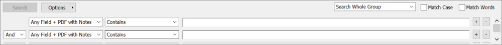6、在搜索界面选择Any Field+PDF with Note,输入笔记关键字,即可对笔记进行搜索