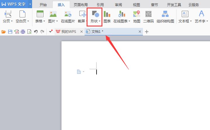 3、在插入选项的编辑工具区里找到形状选项,如图所示:
