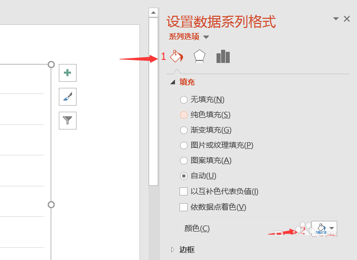 5、修改全部柱形图的颜色,选择填充,在颜色选项选择自己中意的颜色。