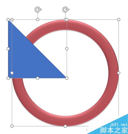 接下来对圆环进行裁剪,实际就是再绘制一个其他图形,将圆环进行部分遮盖,再选中这两个图形,执行“合并形状→剪除”命令即可实现。