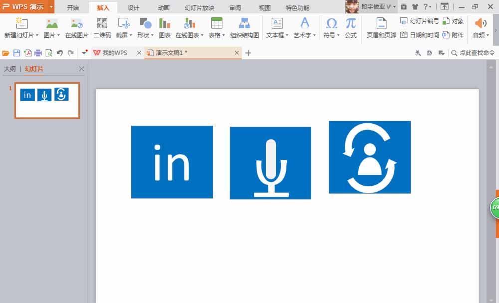 2、点击插入,正方形,填充颜色为蓝色,然后鼠标右键编辑文字,然后继续复制一个正方形,然后添加图标,如图所示