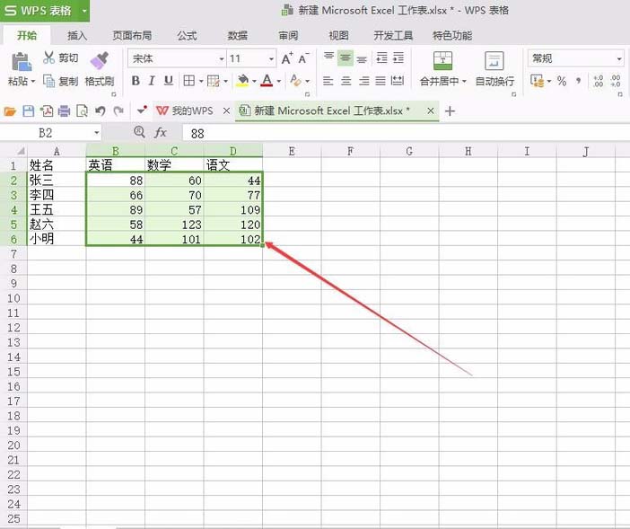 3、接下来,按住鼠标左键,框选需要计算平均值得数据区域