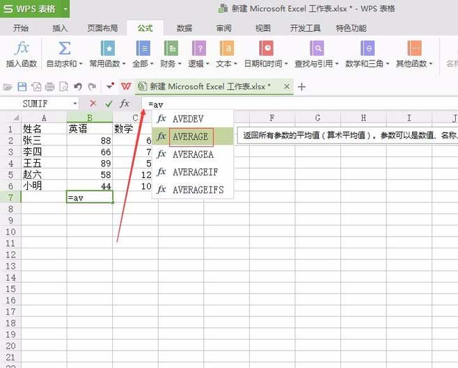 2、在表格上面,公式定义框内输入【=】并输入AVERAGE平均的英文,一般会有只能提示,你只要输入字母的前半部分即可