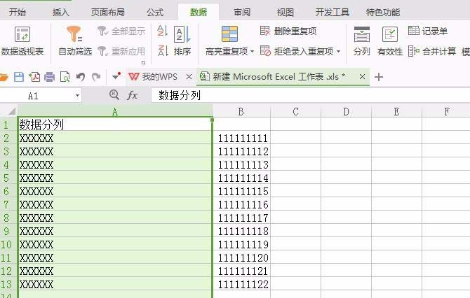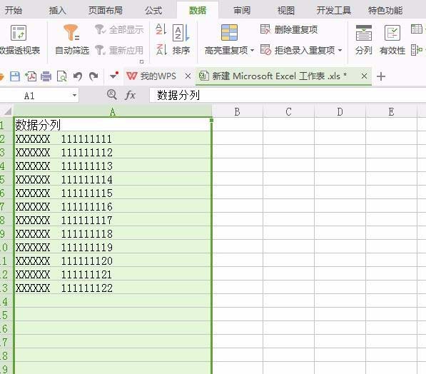 2、鼠标左键选择需要分列的列项内容,如下图所示