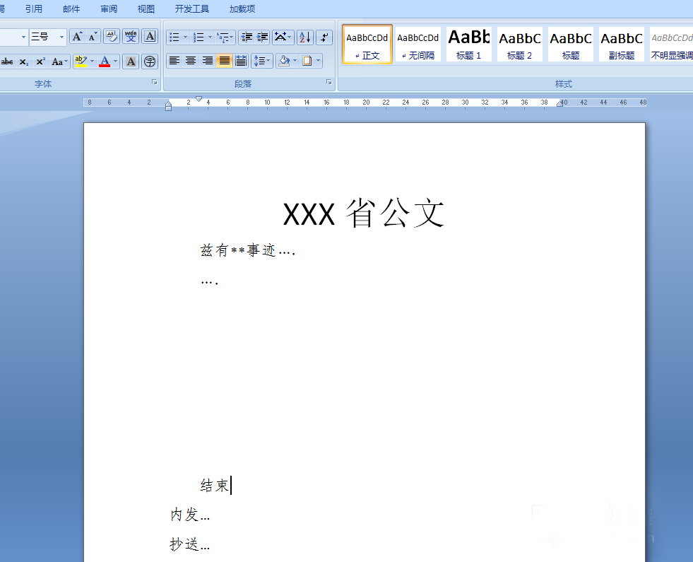 使用给段落加边框的方法给公文头加分隔线