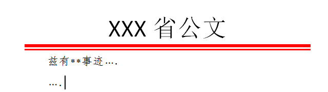 6、公文标题就加好了。用同样的方法,可以给公文结尾也加上红色细线框