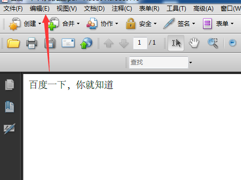 2、点击了的Adobe Acrobat的菜单中的编辑的菜单。