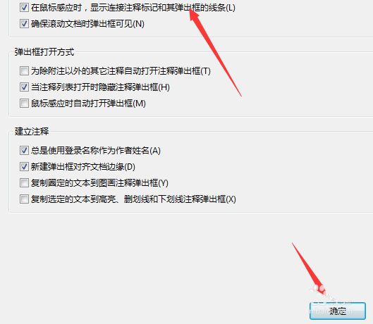 6、勾选上在鼠标感应时显示连接注释标记和其弹出的线条的选项。然后点击确定保存。