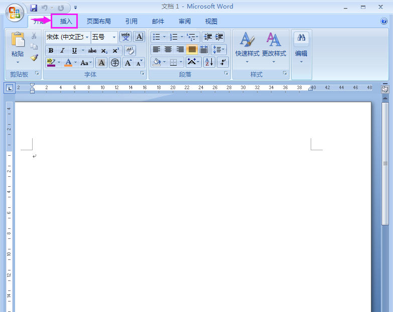 2、在word中找到并用鼠标左键点击插入;
